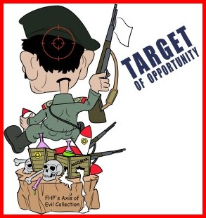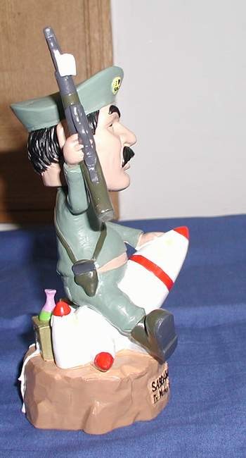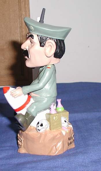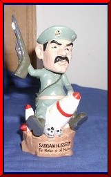 Flaming Hooker's Axis of Evil Collection! Starting with The Mother of All Madmen, Saddam himself, we have all the meanies coming your way. These are a Limited Edition so if you want one, order now. Shipping is approximately the end of April for Saddam, with Osama bin Laden (the Cave-Dwelling Coward), Kim Jong Il (the Pyongyang Pigmy), and others to follow. Pre-release price of $24.95 + shipping will likely be a BARGAIN once these limited editions hit the market and the 125,000 collectors start to bid up the price.